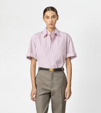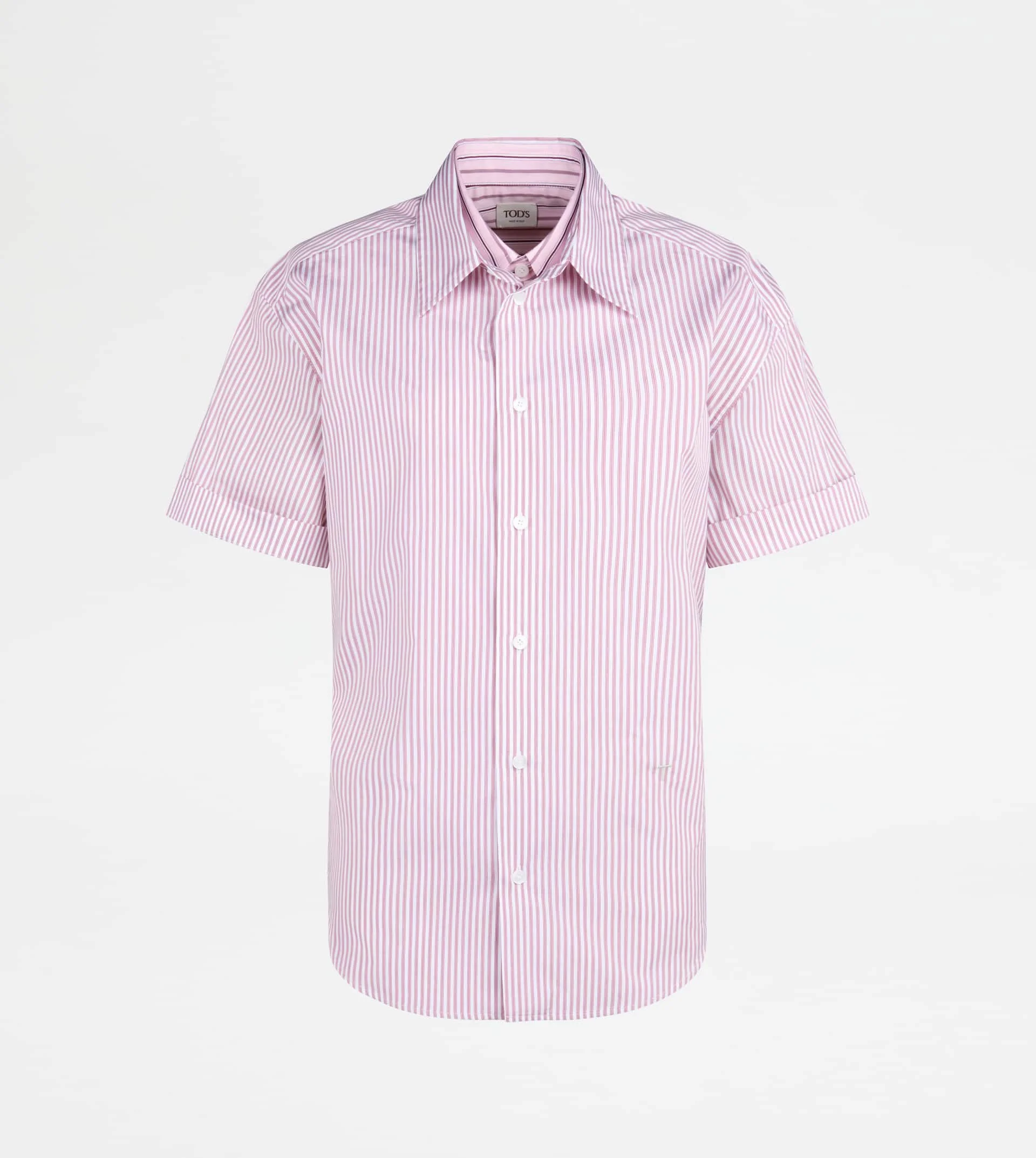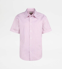 Short-sleeve shirt with double collar, characterized by a combination of two poplins with different striped pattern. Enriched by the Tod's monogram embroidered on the front, it features mother-of-pearl buttons and a back belt for adjusting the fitting. - Made in Italy - Shirt in cotton - Fitting: regular - Item composition: 100% cotton - Maintenance and care cards included