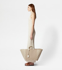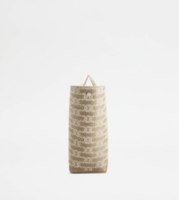 TOD'S DOUBLE UP SHOPPING BAG IN FABRIC AND LEATHER LARGE - BEIGE
