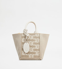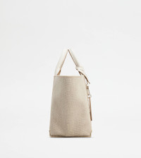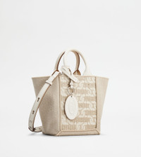 TOD'S DOUBLE UP SHOPPING BAG IN FABRIC AND LEATHER MINI - BEIGE
