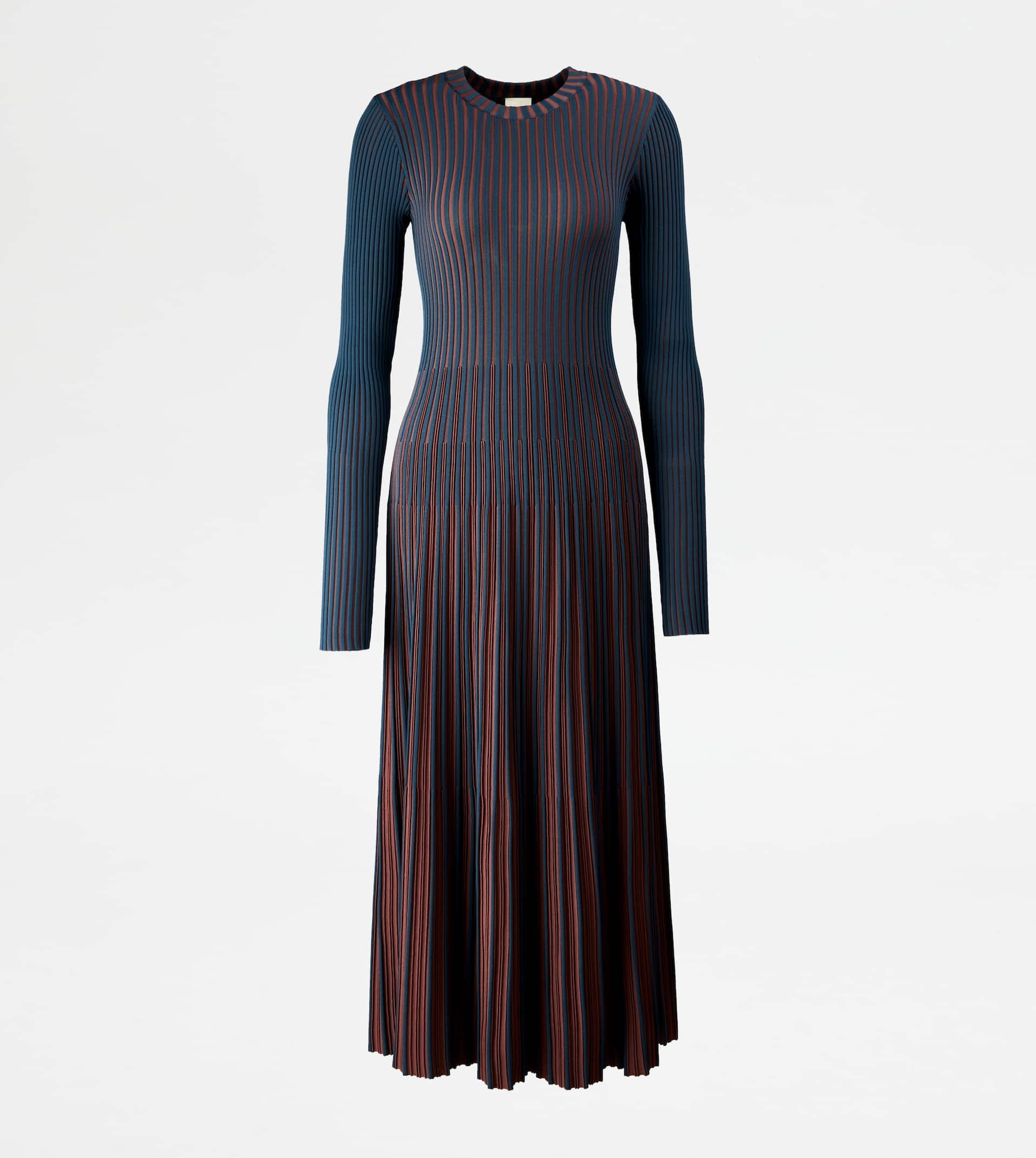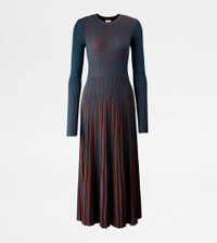 Round-neck striped dress crafted in knit, with pleated skirt. A sophisticated creation, that perfectly blends traditional craftmanship and contemporary femininity. - Made in Italy - Dress in knit - Item composition: 80% viscose, 20% polyamide - Maintenance and care cards included