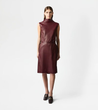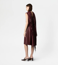 DRESS IN NAPPA LEATHER WITH FRINGES - BURGUNDY