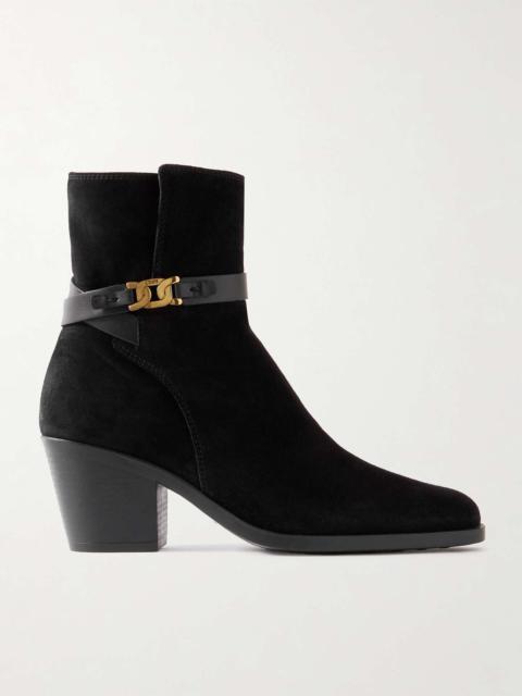 Embellished leather-trimmed suede ankle boots
