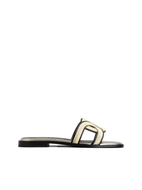 embroidered-strap leather sandals Highlights - Gold-tone - Leather - Embroidered strap - Flat sole - Open toe - Slip-on style Made in Italy Composition Sole: Rubber 100%, Calf Leather 100% Lining: Calf Leather 100% Outer: Fabric 100%