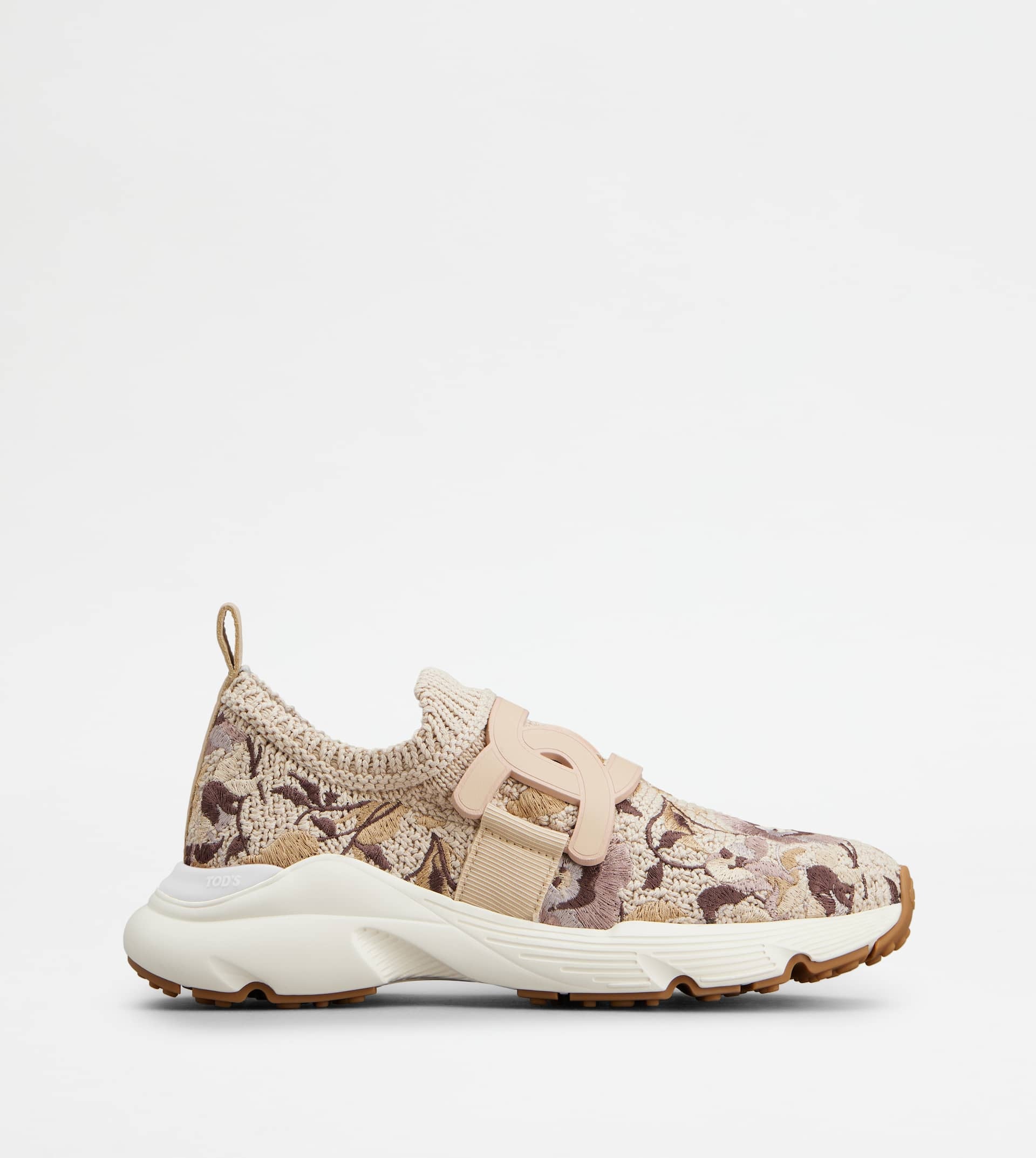 Sock sneakers in knit with floral embroidery. Characterized by a running-inspired rubber chunky outsole, they come with the iconic leather chain accessory. - Made in Italy - Slip-on sneakers - Cotton blend fabric upper - Floral embroidery - Leather detailing - Leather chain accessory - Rubber outsole - Maintenance and care cards included - Branded dustbag