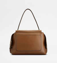 The iconic Tod's Wave Bag reinterpreted in a contemporary design with flowing and sophisticated lines. Crafted in soft calfskin leather, it comes with a practical concealed zip under the front strap, which can be fixed on the sides with snap buttons. The handle, thin and flat, ensures comfortable shoulder-wearing. A removable mirror and back pocket, with Tod's monogram embroidered at the center, complement the style. - Dimensions: L 14.6 ins x H 9.4 ins x D 4.7 ins - Handle: height (drop) 9.1 ins - Made in Italy - Bag in leather - Item crafted in calfskin leather - Tod's logo stamped on the front - Removable mirror - Back pocket with embroidered T - Zip closure - Internal zipped pocket - Maintenance and care cards included - Branded dustbag