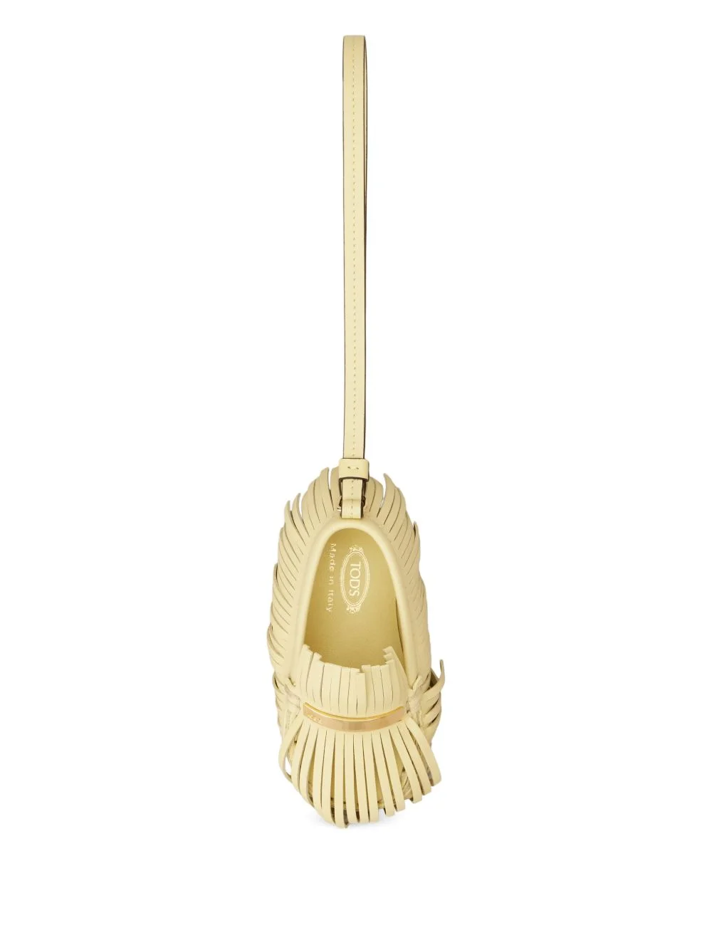 fringed charm Highlights - Light yellow - Fringe detail - Buckle fastening - Strap detail - Gold-tone hardware - Loafer shape Made in Italy Composition Calf Leather 100% SIZE & FIT Measurement LENGTH 11.02 in(28 cm) WIDTH 1.96 in(5 cm)