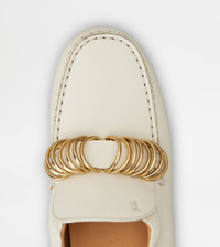 Tod's Gommino loafers in an even softer and more comfortable version. This style with rings on the front is crafted in a particularly precious and silky calfskin leather. Featuring an elastic piping, they come with the T-stitching on the heel loop and the iconic Tod's outsole. A combination of craftsmanship and contemporary easy chic. - Made in Italy - Women's Gommino Loafers - Calfskin leather upper - Elastic piping - Strap with metal rings - Exposed handmade stitching - Leather insole - Iconic Tod's outsole - Maintenance and care cards included - Branded dustbag