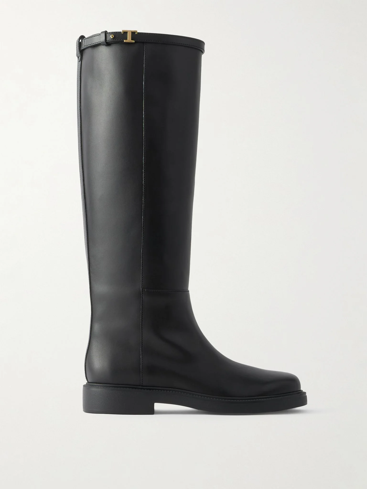 The cuffs of Tod's knee boots are threaded with adjustable straps that feature the label's 'T' hardware. They've been crafted in Italy from smooth leather and rest on 30mm heels. Size & Fit - Fits true to size, take your normal size - Italian sizing Details & Care - Heel measures approximately 30mm/ 1 inch - Black leather (Calf) - Pull on