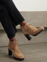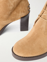 The rubber pebbles just above the stacked 80mm heel on Tod's 'Gomma' boots make them instantly recognizable. They're made from suede and have slim laces and round toes. Details & Care - Heel measures approximately 80mm/ 3 inches - Tan suede - Lace-up front