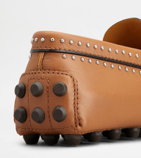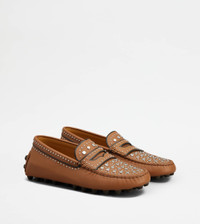 The Gommino Bubble style emphasizes the iconic rubber pebble feature in a contemporary key. Result of a careful craftsmanship, they come here with original mirror studs. Crafted in calfskin leather, they come with the maxi rubber pebbles on the outsole and heel. - Made in Italy - Women's Tod's Gommino Bubble - Calfskin leather upper - Penny bar - Metal studs with mirror detailing - Exposed handmade stitching - Leather insole - Maxi rubber pebble outsole - Maxi rubber pebble detailing on the heel - Maintenance and care cards included - Branded dustbag