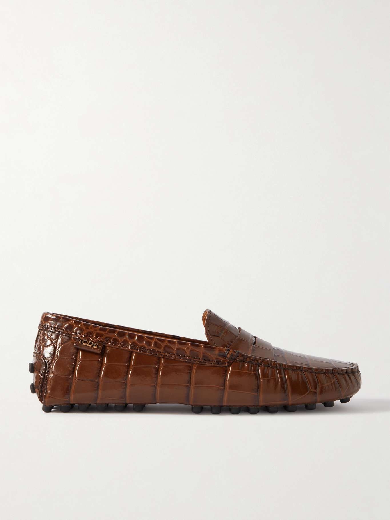 EDITORS'NOTES Tod's iconic 'Gommino' loafers garnered popularity in the late '70s due to their practicality for driving and have since become a perennial in many wardrobes. This version has been crafted in Italy from croc-effect leather and sits on classic pebble soles. Wear yours from the office to dinner. SIZE & FIT - Fits true to size, take your normal size - Italian sizing DETAILS & CARE - Slight heel - Brown croc-effect leather (Calf) - Slip on