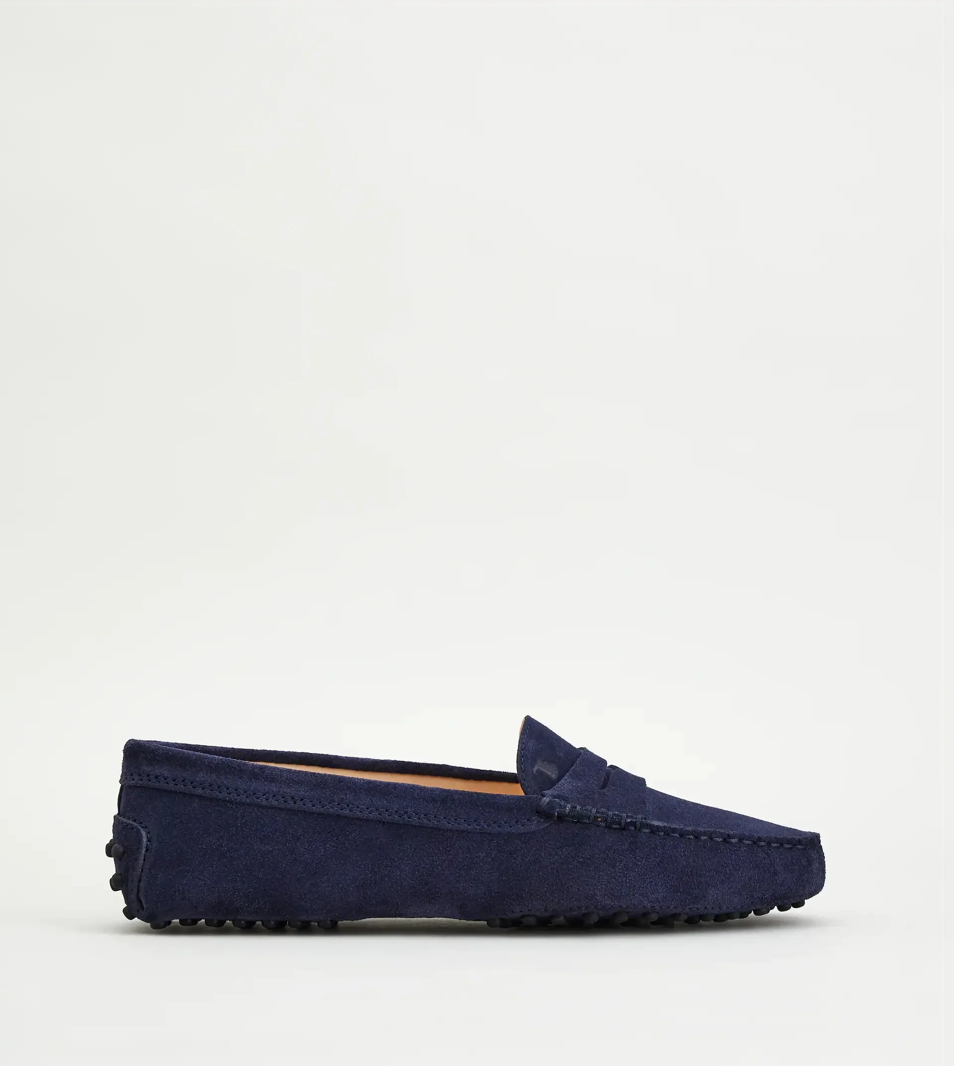 Tod's Gommino driving shoes in suede with exposed hand stitching, penny bar, hot-stamped monogram and iconic rubber pebble outsole. A timeless design, available in a wide range of colors. - Made in Italy - Suede upper - Exposed hand stitching - Hot-stamped Tod's monogram - Footbed 0.5 ins - Penny bar - Leather interior - Rubber pebble detailing on the heel - Iconic rubber pebble outsole - Care and maintenance instructions included - Branded dustbag included
