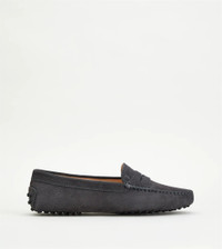 Tod's Gommino driving shoes in suede with exposed hand stitching, penny bar, hot-stamped monogram and iconic rubber pebble outsole. A timeless design, available in a wide range of colors. - Made in Italy - Suede upper - Exposed hand stitching - Hot-stamped Tod's monogram - Footbed 0.5 ins - Penny bar - Leather interior - Rubber pebble detailing on the heel - Iconic rubber pebble outsole - Care and maintenance instructions included - Branded dustbag included