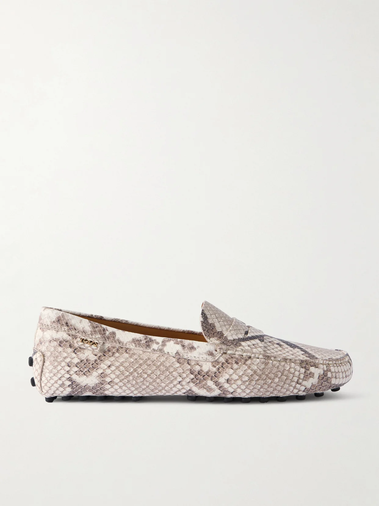 Styled with the second look from Tod's Fall '25 runway show, these 'Gommino' loafers have been made in Italy from snake-effecy leather. The 133 rubber pebbles on the sole are inspired by vintage driving styles, so they offer good grip and help to support your foot. Wear them to the office or for weekend strolls.
