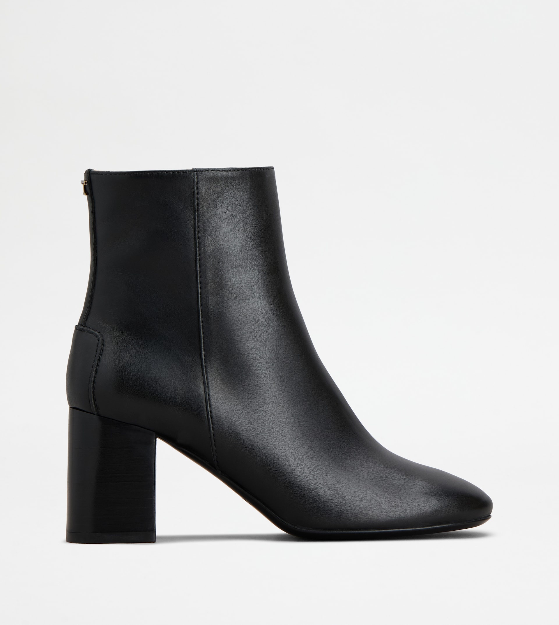 Ankle boots with essential line, crafted in soft calfskin leather. Enriched by the T Timeless logo on the back, they come with a zip on the inside, a block heel and leather outsole with rubber section. - Made in Italy - Ankle boots in leather - Calfskin leather upper - Metal T Timeless logo on the back - Zip on the inside - Leather lining and insole - Leather heel 2.8 ins - Leather and rubber outsole - Maintenance and care cards included - Branded dustbag