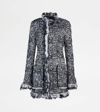 Jacket in wool and alpaca boucle knit, with fringed hems and leather-covered buttons. Featuring a round neck, it comes with two maxi applied pockets. - Made in Italy - Jacket in wool - Fitting: regular - Item composition: 70% virgin wool, 25% alpaca, 5% polyamide, lining 100% viscose, ovine leather detailing - Maintenance and care cards included