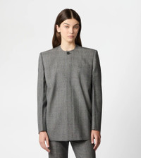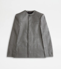 Relaxed fit round-neck jacket with minimal taste, crafted in wool with yarn-dyed checks pattern. Fastened with English-style fastening, it features the characteristic T-stitching on the first button. - Made in Italy - Jacket in wool - Fitting: relaxed - The model is 5' 9'' and wears size 40 (IT) - Item composition: 100% virgin wool, lining 100% cotton, second lining 100% viscose - Maintenance and care cards included
