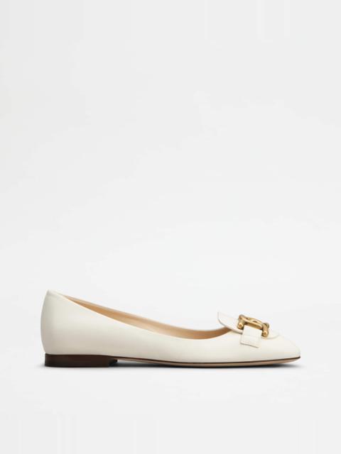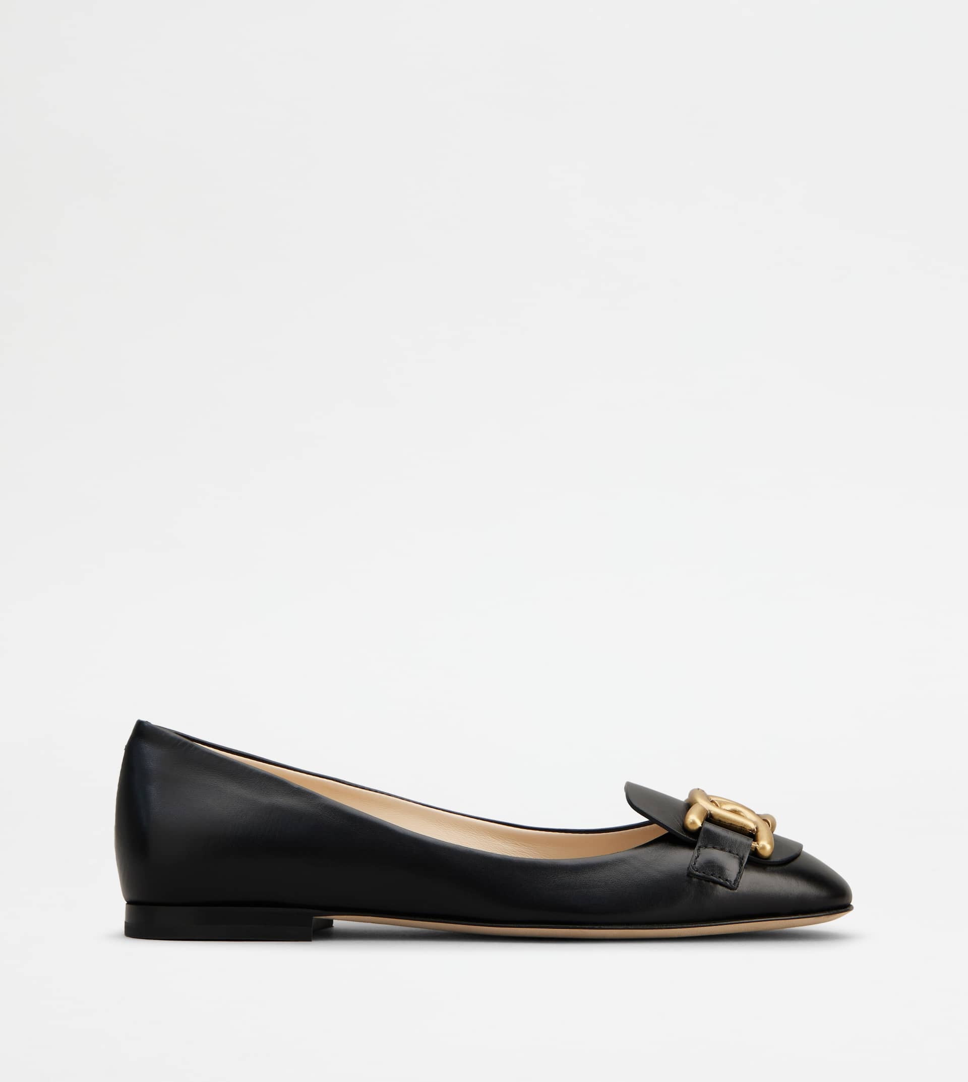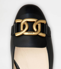 Ballerinas in calfskin leather with iconic branded metal chain accessory. Featuring a lather outsole, they are a refined style that combines comfort and timeless femininity. - Made in Italy - Ballerinas in leather - Calfskin leather upper - Branded metal chain accessory - Leather insole - Leather outsole - Maintenance and care cards included - Branded dustbag