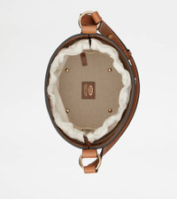 TOD'S KATE BUCKET BAG IN LEATHER AND CANVAS SMALL - BEIGE, BROWN