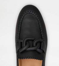 Loafers in calfskin leather. Finished with covered chain accessory and smooth leather threading, this easy-chic style comes with a leather outsole. - Made in Italy - Women's Tod's Kate Loafers - Calfskin leather upper - Branded metal Tod's accessory - Leather outsole - Maintenance and care cards included - Branded dustbag