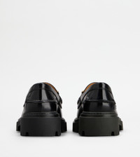 Loafers in elegant brushed leather, with exposed handmade stitching. Featuring the iconic rubber pebbles on the heel, they are characterized by a rubber lugged outsole. A refined urban passe-partout, adorned by the branded metal chain accessory. - Made in Italy - Women's lugged loafers - Leather upper - Brushed finishing - Branded metal chain accessory - Exposed handmade stitching - Rubber heel - Rubber lugged outsole - Maintenance and care cards included - Branded dustbag