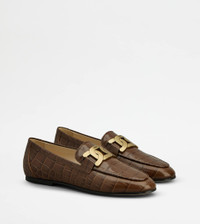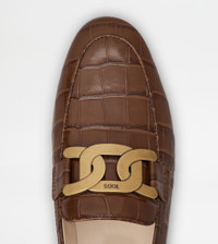 Loafers in calfskin leather with crocodile print and leather outsole. A style with sober and timeless taste, complemented by the iconic branded metal chain accessory. - Made in Italy - Women's loafers with clamp - Calfskin leather upper - Crocodile print - Branded metal chain accessory - Leather insole - Leather outsole - Leather heel with rubber insert - Maintenance and care cards included - Branded dustbag