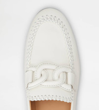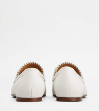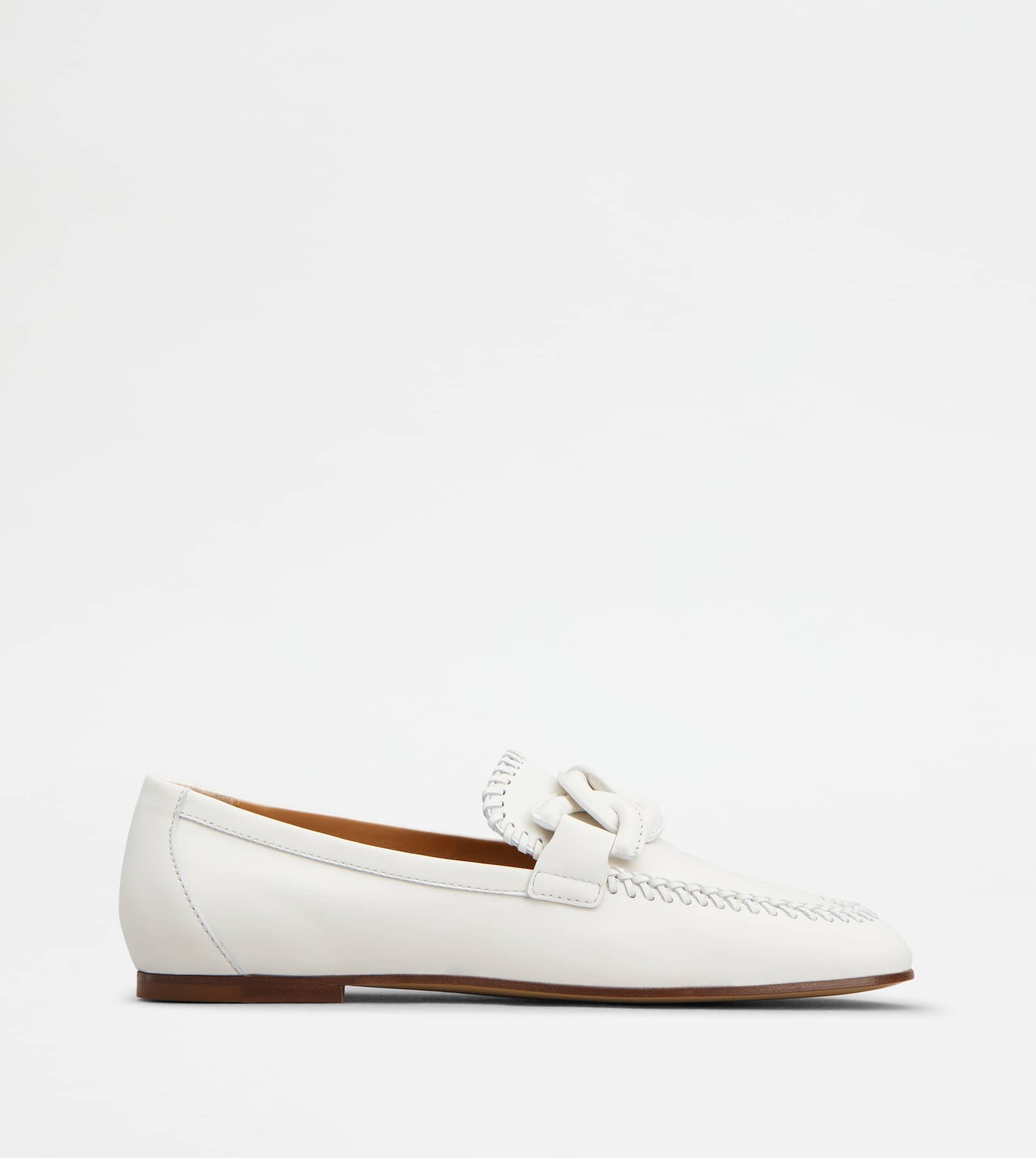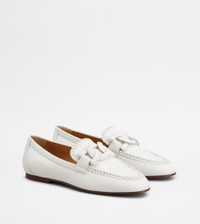 Loafers in calfskin leather. Finished with covered chain accessory and smooth leather threading, this easy-chic style comes with a leather outsole. - Made in Italy - Women's Tod's Kate Loafers - Calfskin leather upper - Branded metal Tod's accessory - Leather outsole - Maintenance and care cards included - Branded dustbag