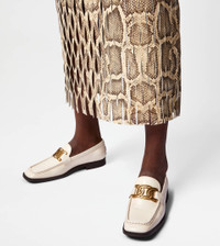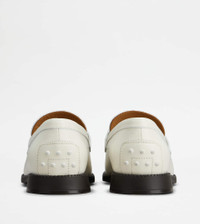 Loafers in smooth leather with squared toe and metal chain accessory. Featuring a rubber outsole with embossed rubber pebbles, echoed by the detailing on the heel, they interpret a casual and timeless elegance. - Made in Italy - Loafers with clip - Leather upper - Metal chain accessory - Leather insole - Rubber pebble detailing on the heel - Serrated welt - Rubber outsole with embossed rubber pebbles - Maintenance and care cards included - Branded dustbag