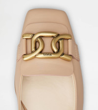Pumps in calfskin leather, with squared toe and iconic branded metal chain accessory. Featuring a covered medium heel and leather outsole, they are a refined style that combines comfort and elegance. - Made in Italy - Pumps in leather - Calfskin leather upper - Branded metal chain accessory - Leather insole - Covered heel 2 ins - Leather outsole - Maintenance and care cards included - Branded dustbag