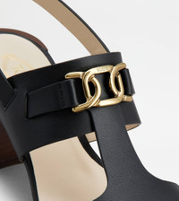 Adorned with the iconic chain accessory on the instep, these sandals are crafted in refined calfskin leather. Featuring a heel strap, medium heel and leather outsole, they are an extremely versatile casual-chic creation. - Made in Italy - Women's sandals - Calfskin leather upper - Branded metal chain accessory - Heel strap - Leather insole - Leather heel 3 ins - Leather outsole - Maintenance and care cards included - Branded dustbag