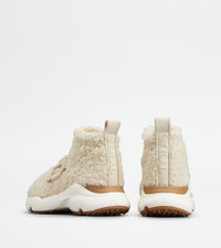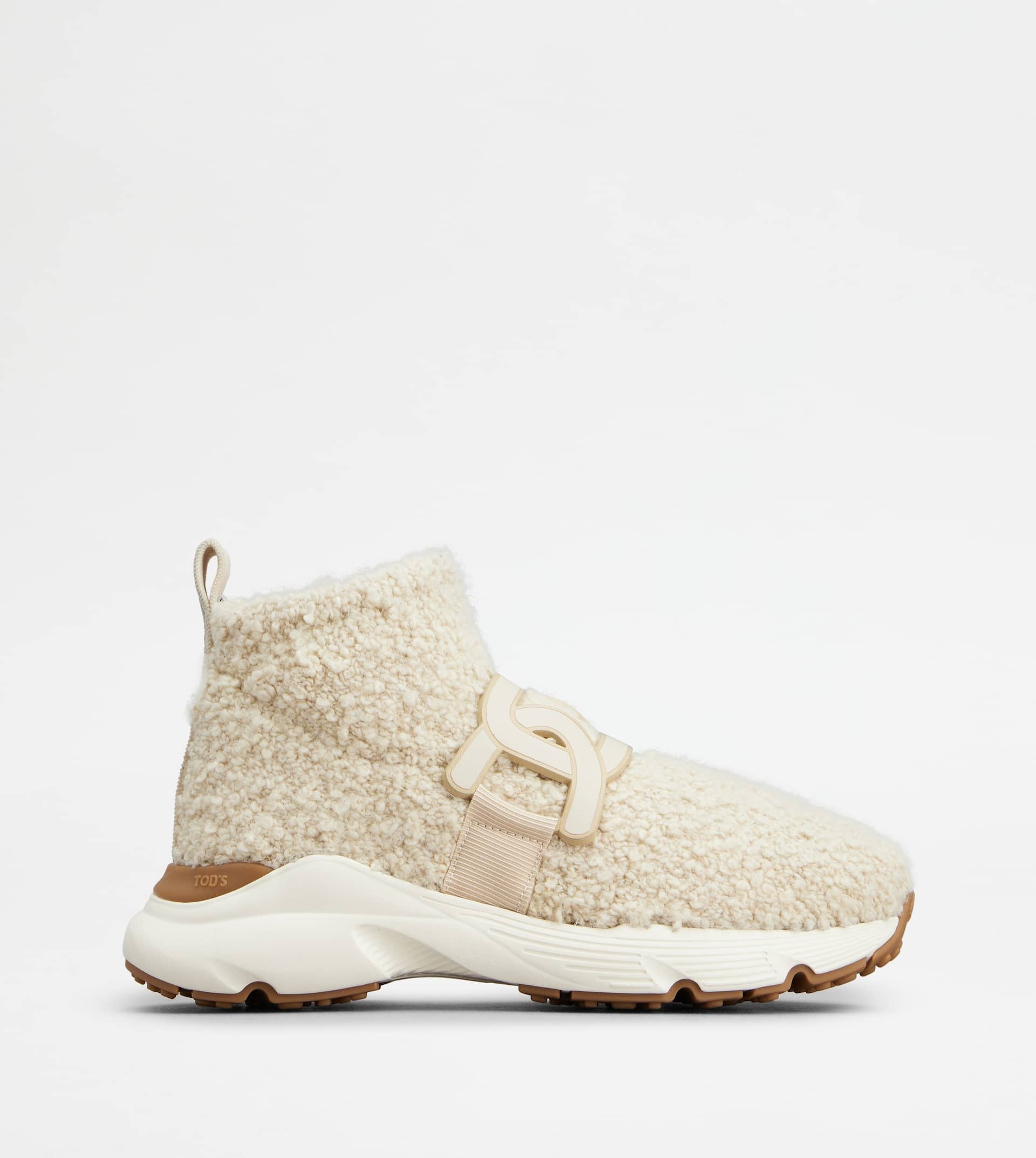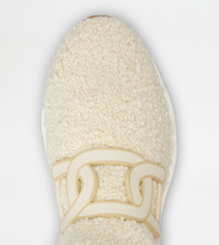 Sock sneakers in bouclé knit with jacquard Tod's logo on the back. Characterized by a running-inspired rubber chunky outsole, they come with the iconic leather chain accessory. - Made in Italy - Slip-on sneakers - Bouclé fabric upper - Leather chain accessory - Jacquard logo on the back - Rubber outsole - Maintenance and care cards included - Branded dustbag