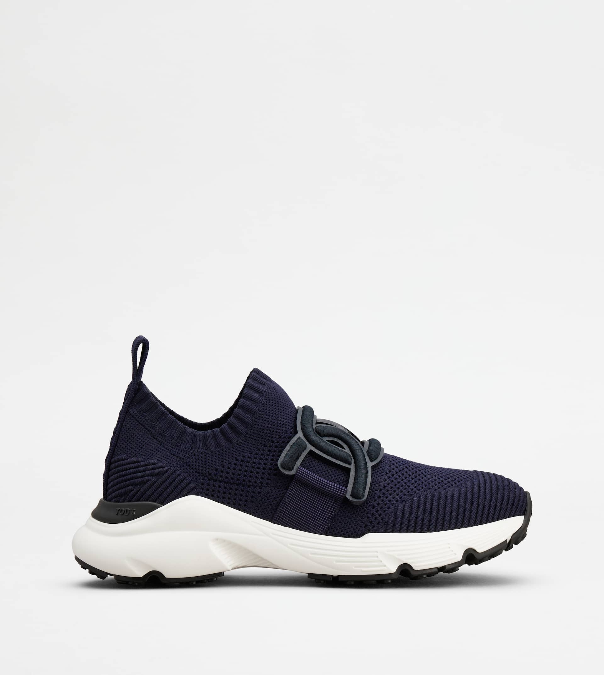 Sock sneakers in knit with jacquard Tod's logo on the back. Characterized by a running-inspired rubber chunky outsole, they come with the iconic leather chain accessory with embossed embroidery. - Made in Italy - Slip-on sneakers - Fabric upper - Leather chain accessory with embroidery - Jacquard logo on the back - Rubber outsole - Maintenance and care cards included - Branded dustbag