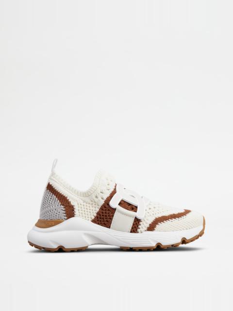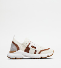 KATE SLIP-ON SNEAKERS IN FABRIC - OFF WHITE, BROWN, GREY