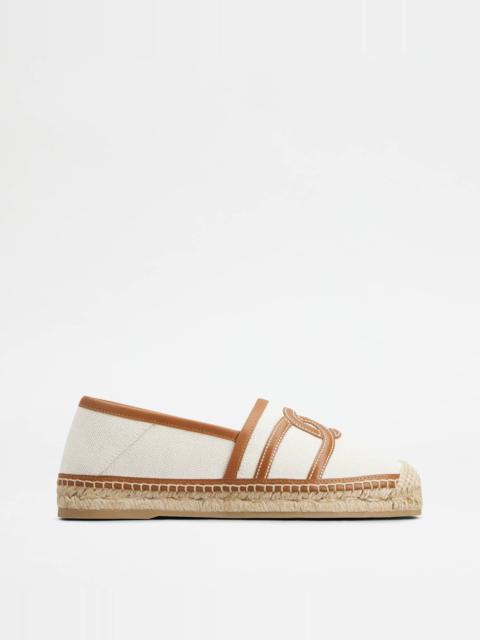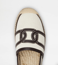 Slip-ons in linen blend canvas with leather inserts and iconic chain pattern. A summer creation with an easy and refined mood at once, characterized by a cord insole and piping. - Espadrilles in fabric - Linen blend cotton upper - Calfskin leather inserts - Jute insole with leather detailing - Rubber outsole with jute piping - Maintenance and care cards included - Branded dustbag