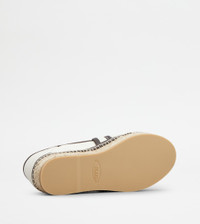 KATE SLIP-ONS IN CANVAS AND LEATHER - BEIGE, BLACK