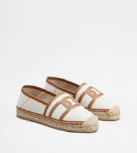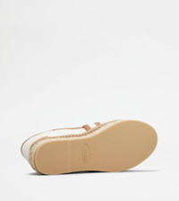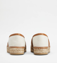 KATE SLIP-ONS IN CANVAS AND LEATHER - OFF WHITE, BROWN