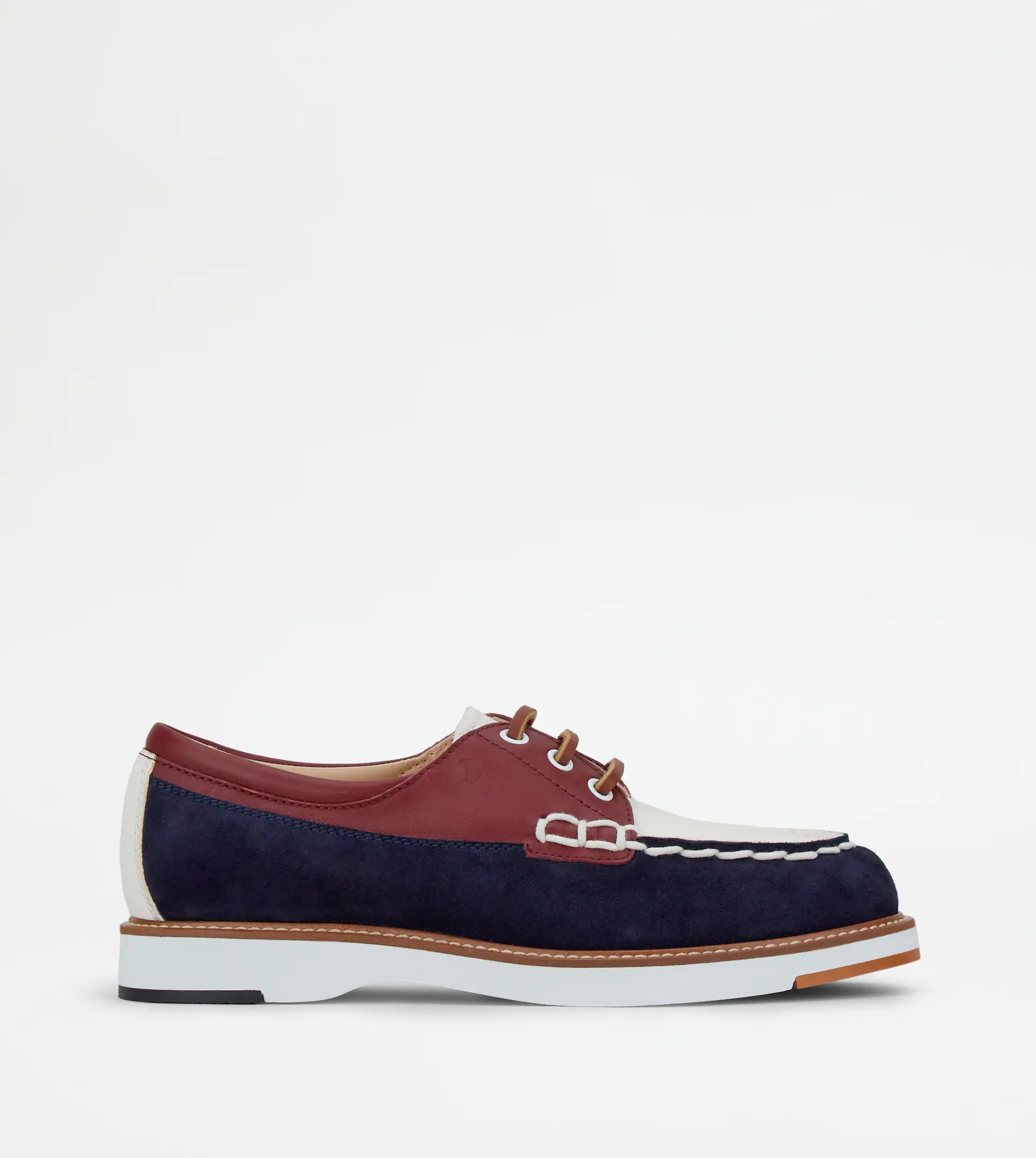 Lace-ups in elegant leather with suede inserts, exposed handmade stitching, leather laces, stamped Tod's monogram, rubber outsole with embossed rubber pebbles. - Made in Italy - Women's Tod's Lace-ups - Leather upper - Suede inserts - Leather laces - Stamped Tod's monogram - Exposed handmade stitching with waxed lace - Leather welt - Rubber outsole with reinforced toe and heel - Maintenance and care cards included - Branded dustbag