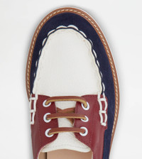 LACE-UPS IN LEATHER - WHITE, BLUE