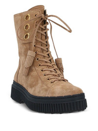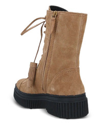 leather ankle boots Highlights - Camel brown - Side zip fastening - Lace-up detailing - Eyelet detailing - Tasselled edge Made in Italy Composition Outer: Calf Suede 100% Lining: Calf Leather 100% Sole: Rubber 100% SIZE & FIT Measurement HEEL 1.96 in(5 cm) PLATFORM 1.57 in(4 cm)