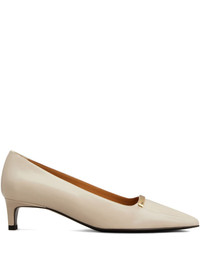 leather pointed-toe pumps Highlights - Beige - Leather upper - Pointed toe - Kitten heel - Gold-tone bar detail - Slip-on style Made in Italy Composition Sole: Leather 100% Lining: Leather 100% Outer: Leather 100%
