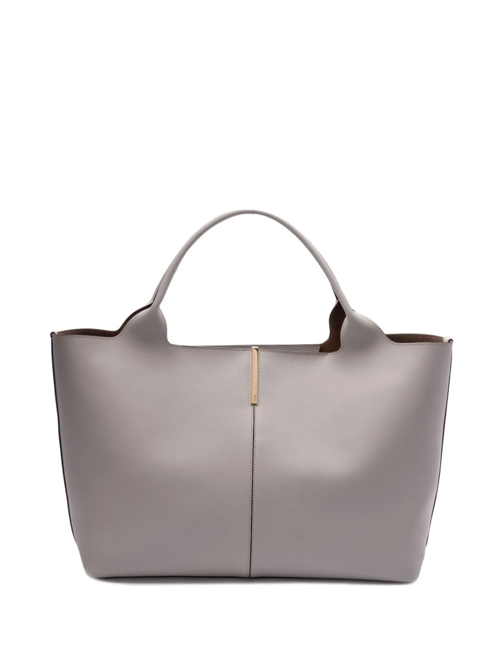 leather tote bag Highlights - Medium grey - Concealed magnetic fastening - Two rolled top handles - Engraved logo - Main compartment Made in Italy Composition Outer: Calf Leather 100% SIZE & FIT Measurement DEPTH 5.11 in(13 cm) HANDLE 6.69 in(17 cm) HEIGHT 10.62 in(27 cm) WIDTH 18.89 in(48 cm)