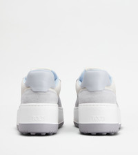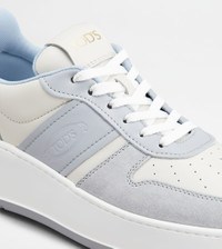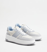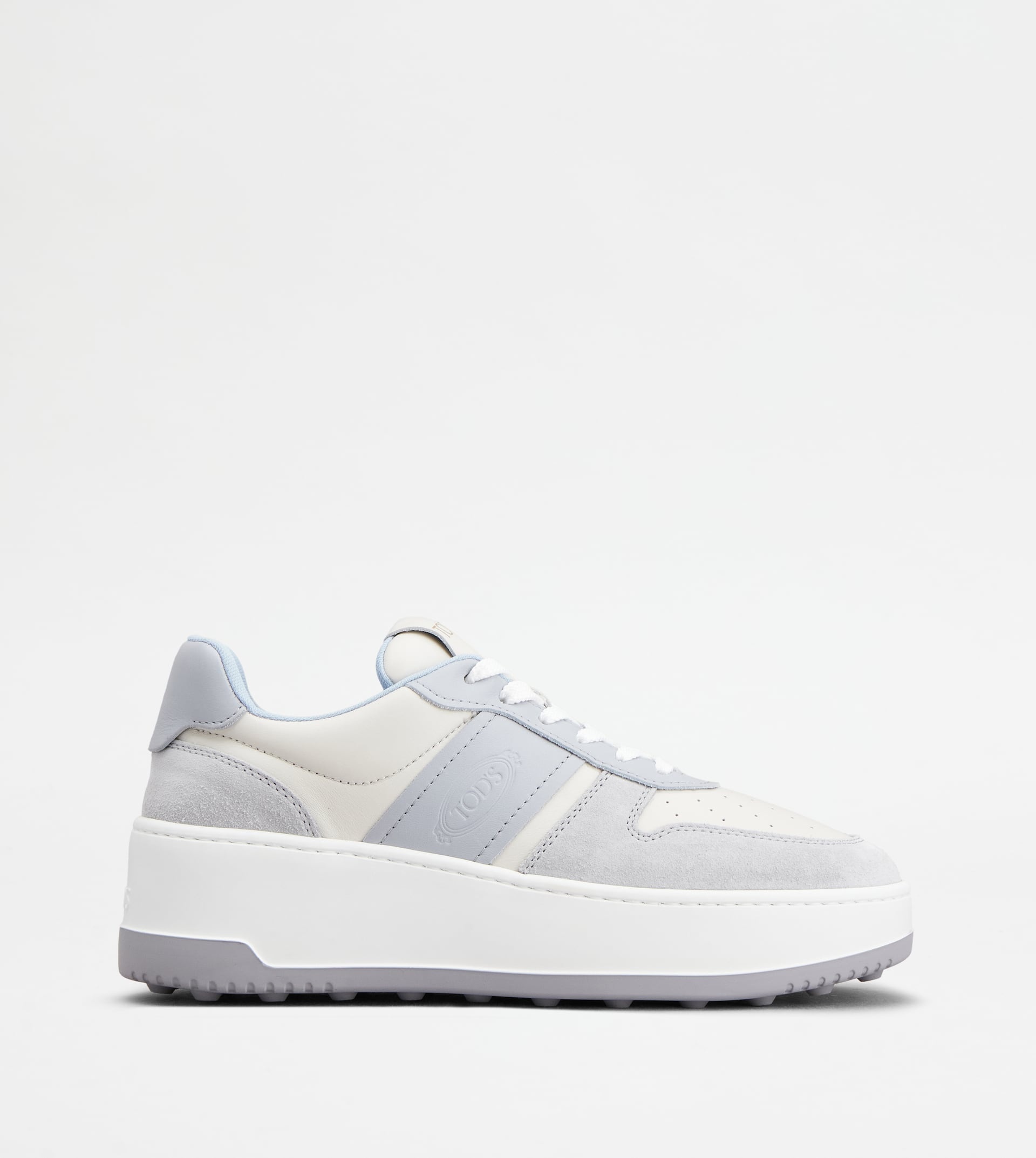 PLATFORM SNEAKERS IN LEATHER - WHITE, GREY, LIGHT BLUE