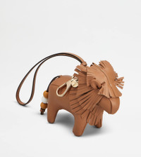 LION CHARM IN LEATHER - BROWN