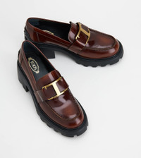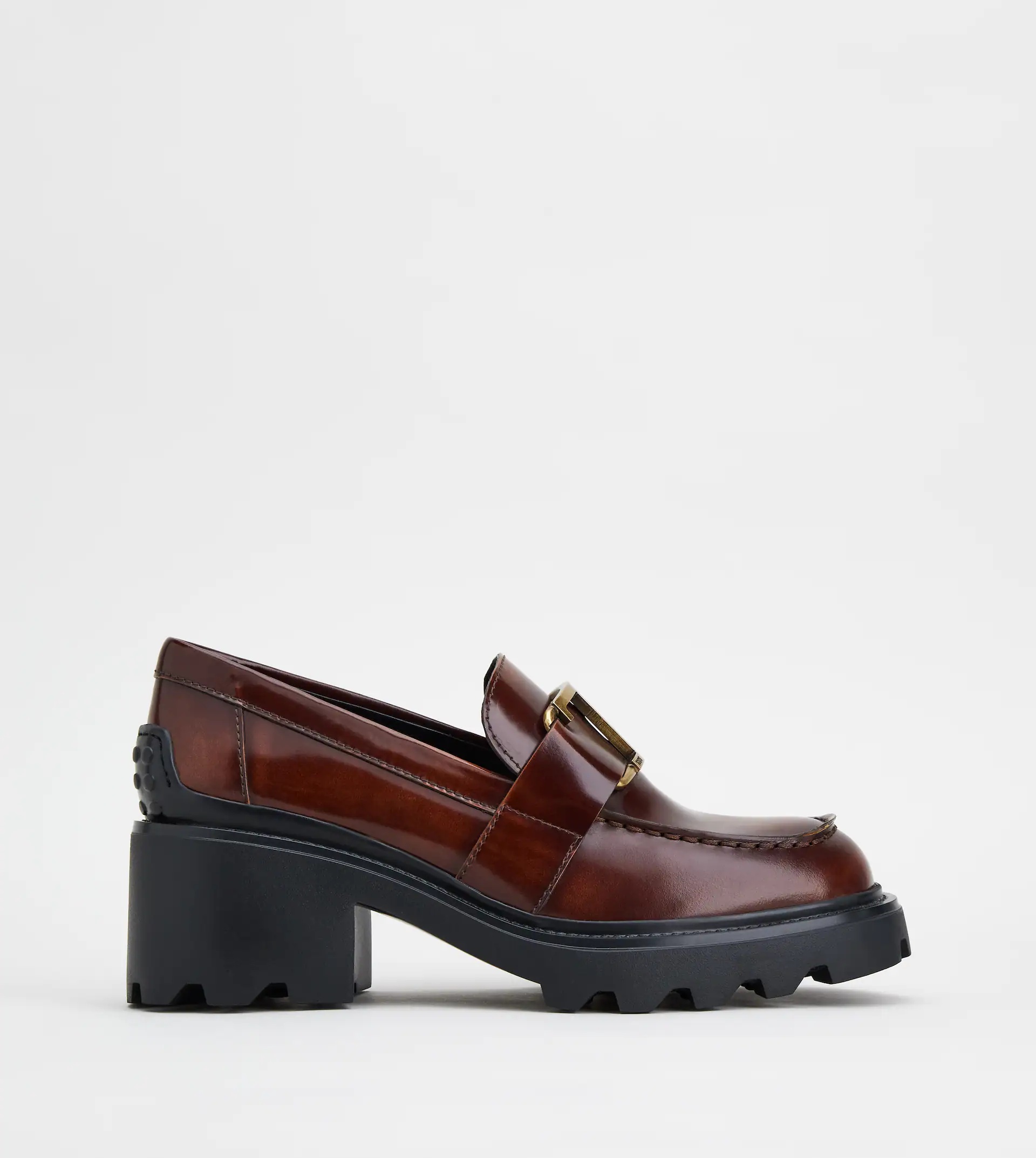 Loafers in elegant semi-shiny leather with a band and branded metal T Timeless accessory, rubber pebble detailing on the heel and rubber lugged outsole. - Made in Italy - Women's Tod's loafers - Leather upper - Band with branded metal T Timeless accessory - Rubber pebble detailing on the heel - Rubber heel 2.4 ins - Rubber lugged outsole - Maintenance and care cards included - Branded dustbag
