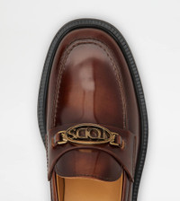 Loafers in calfskin leather with penny bar and oval with metal Tod's logo. Finished with exposed handmade stitching, they come with a rubber outsole with embossed rubber pebbles. - Made in Italy - Loafers with clamp - Calfskin leather upper - Penny bar - Leather lining and insole - Rubber outsole with rubber pebbles - Maintenance and care cards included - Branded dustbag