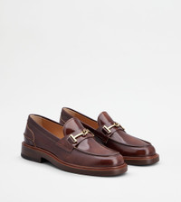 Loafers with metal double T Ring accessory and leather outsole. Crafted in fine brushed calfskin leather, they are a timeless elegance creation. - Made in Italy - Women's loafers with clip - Calfskin leather upper - Metal double T Ring accessory - Leather insole - Leather heel with rubber insert - Leather outsole - Maintenance and care cards included - Branded dustbag