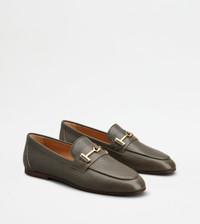 Loafers in natural grain ovine leather, with leather outsole. A timeless elegance style, combined with the metal T Ring accessory. - Made in Italy - Women's loafers with clip - Ovine leather upper - Metal T Ring accessory - Leather insole - Leather outsole - Leather heel with rubber insert - Maintenance and care cards included - Branded dustbag