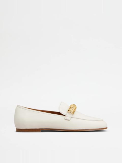 Loafers in soft nappa leather with metal rings on the front. An elegant and versatile style, with timeless class. - Made in Italy - Women's loafers - Ovine leather upper - Decorative metal rings - Leather insole - Leather outsole - Maintenance and care cards included - Branded dustbag
