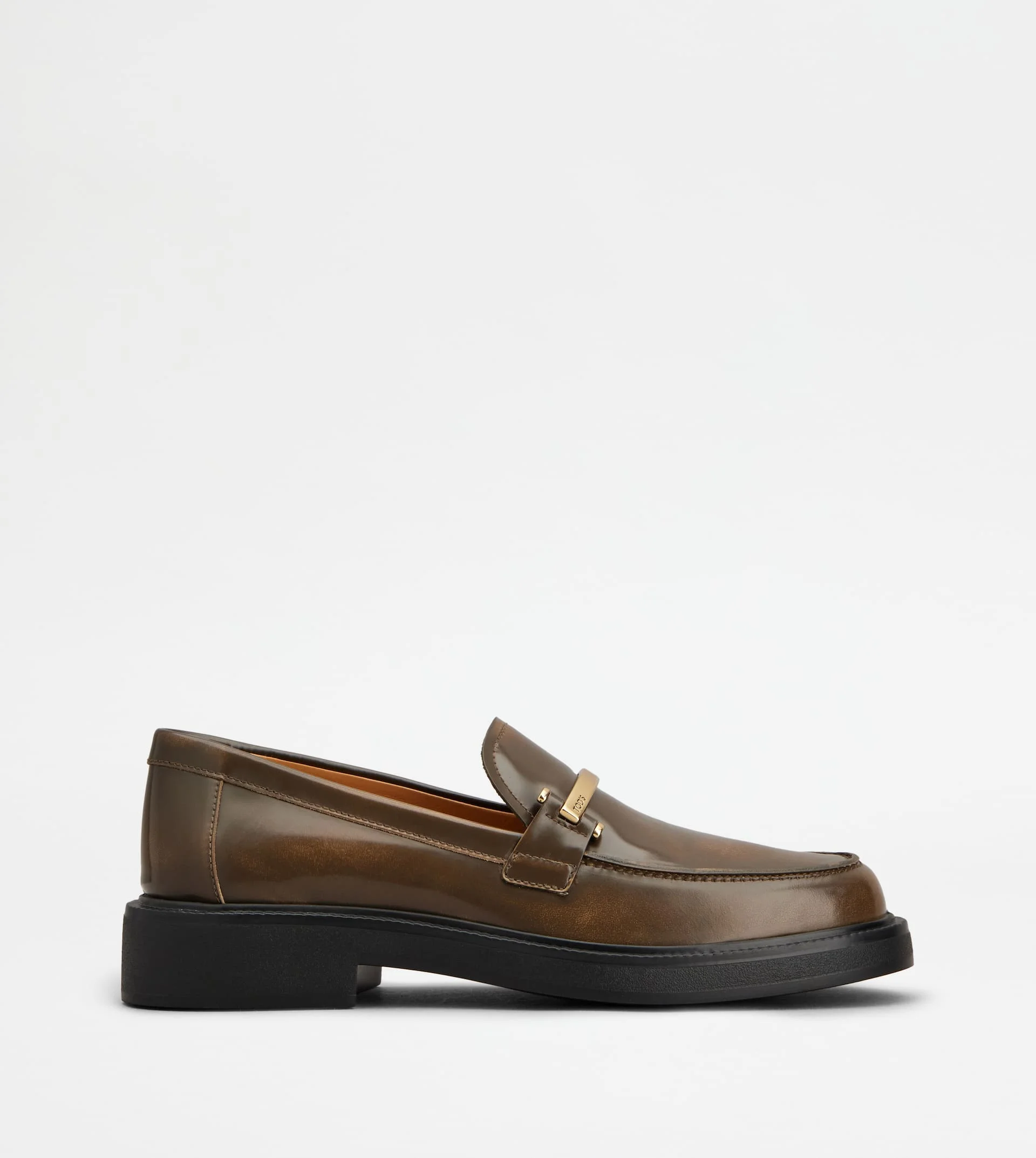 Loafers in elegant brushed calfskin leather, enriched by the metal bar accessory with Tod's logo secured on the side. Finished with exposed stitching, they feature a leather outsole with iconic embossed detailing. - Made in Italy - Women's loafers with clamp - Calfskin leather upper - Branded metal bar accessory - Leather lining and insole - Rubber outsole with embossed detailing - Maintenance and care cards included - Branded dustbag