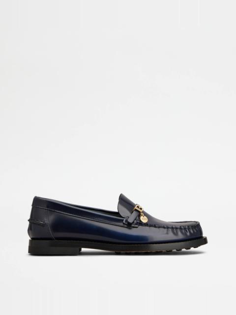 Loafers crafted in brushed calfskin leather, featuring a strap with mini tongue buckle and stamped Tod's logo pendant. Characterized by a slightly gathered toe, they are finished with handmade stitching and leather outsole with rubber injection. - Made in Italy - Women's loafers - Calfskin leather upper - Strap with buckle and pendant - Leather insole - Leather outsole with rubber injection - Maintenance and care cards included - Branded dustbag